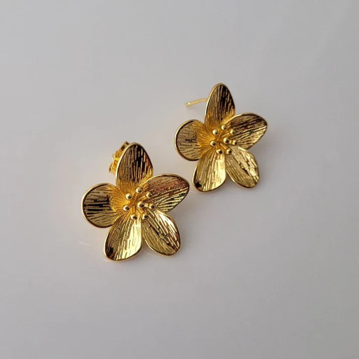 Solene Blossom Studs bring the beauty of nature into refined gold — five sculpted petals radiating soft texture and light-catching polish.